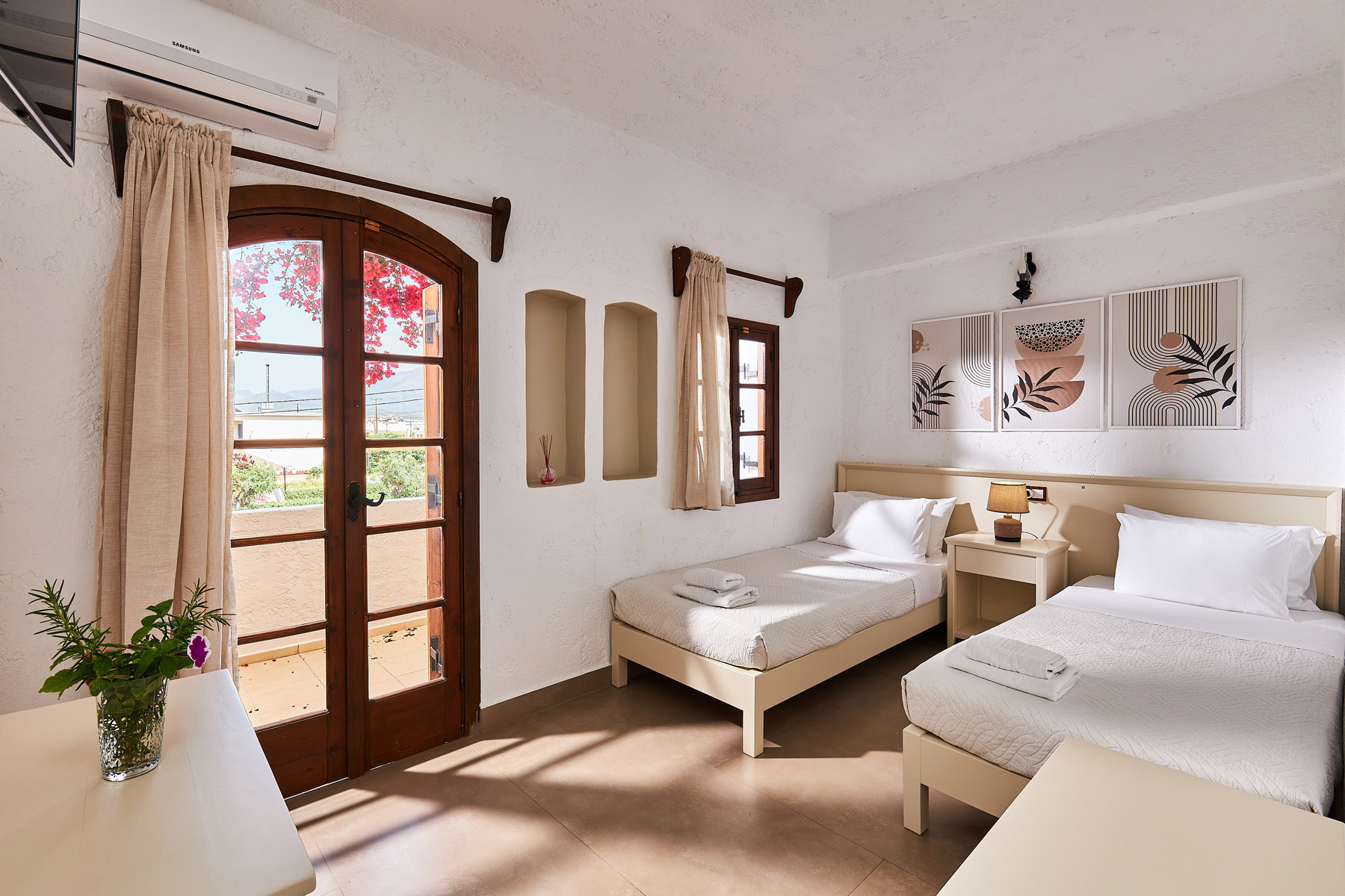 Introducing our Standard Double Twin Studio, a versatile option at Mila Malia Studios Hotel. This room type is ideal for friends, colleagues, or couples who prefer separate sleeping arrangements. We have two variations of this room type available, each with its own unique features.